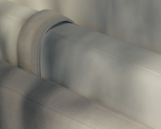 - Headrest cushion made of fiber and foam wrapped around MDF