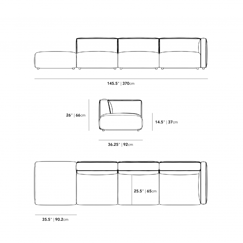 • Includes two armless pieces, one arm piece, and one ottoman