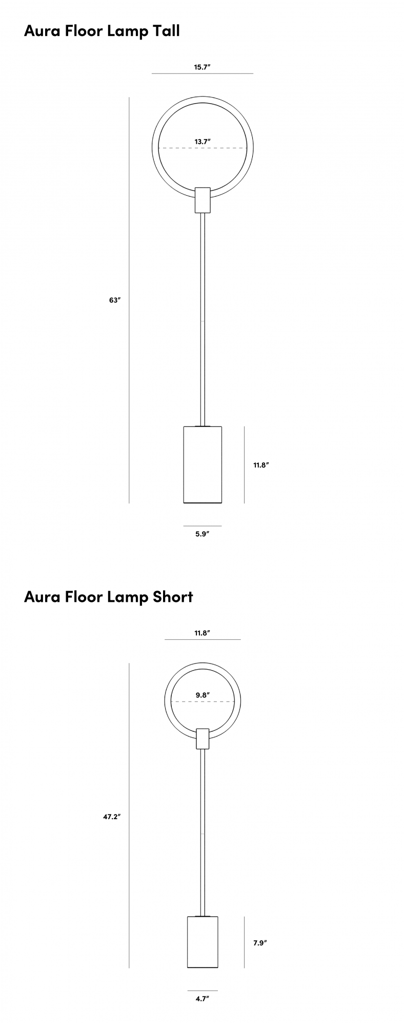 Like a sunset, the Aura Floor Lamp creates beauty wherever it shines. This contemporary lamp, made of gleaming brass, rich black marble, and halo-like bulb, play on the motifs of radiance and shape. Available in two sizes, the Aura Floor Lamp casts an overarching feel of sophisticated elegance in any room.