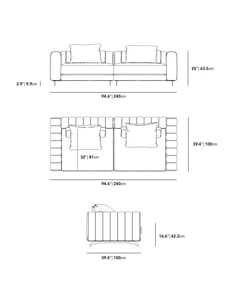 - Channel tufted detailing on the back and sides