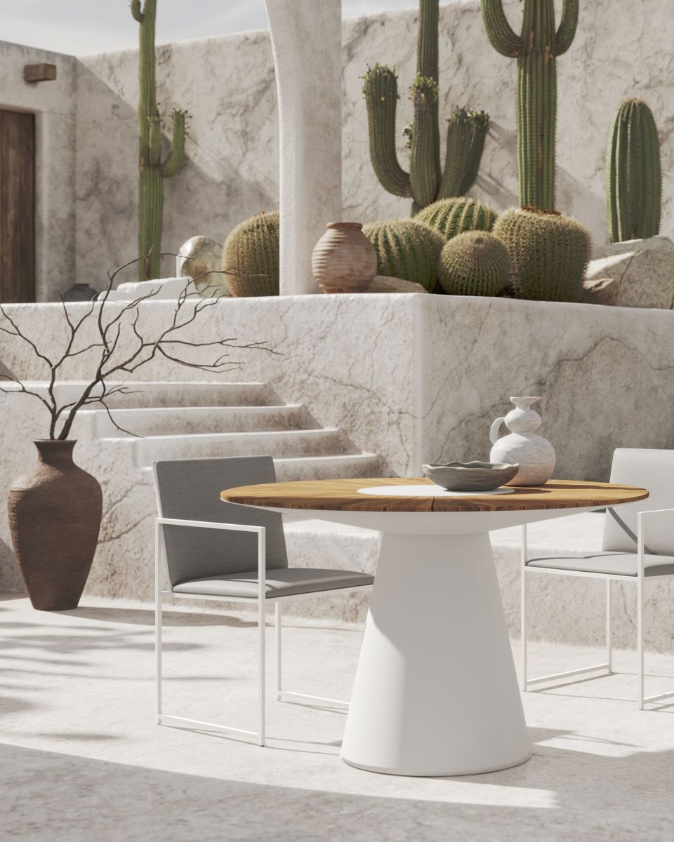 Go for a minimal, Scandinavian-inspired round dining table like the Winston Outdoor Dining Table and pair it with a sleek dining chair with clean lines like the Parson Outdoor Dining Chair, a great option for smaller outdoor dining areas.