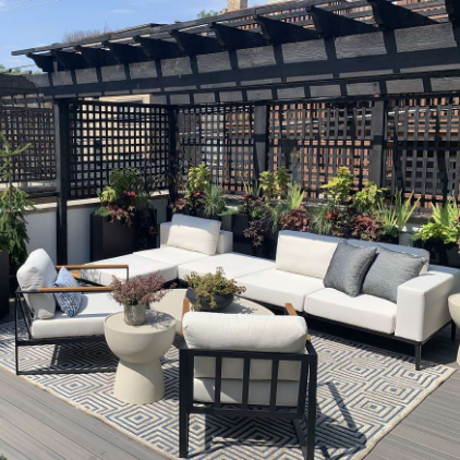 Optimize your outdoor spaces and decorate them as you would your living room. Add a plush outdoor modular sectional like the Arya Outdoor Modular Sectional, perfect for relaxing in the sun after a long day.