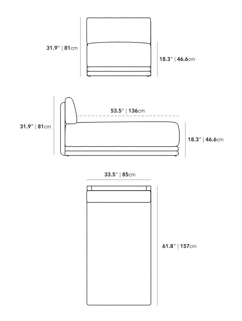 - Chaise can be assembled on either side for ultimate versatility