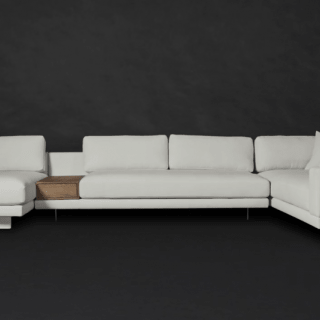 Compelling in its simple yet cutting edge style, the Dresden modular collection is a bold take on contemporary design. The sleek, low profile frame is met with grand cloud-like seat cushions to create the statement making structure. The Dresden also balances the expansive seating with an interchangeable side table insert that is offered in walnut, natural, and white lacquer finishes. Grounded on cast stainless steel legs with an elegant brushed finish, this piece's thoughtful composition demonstrates an exceptional opportunity for modern luxury in your home.