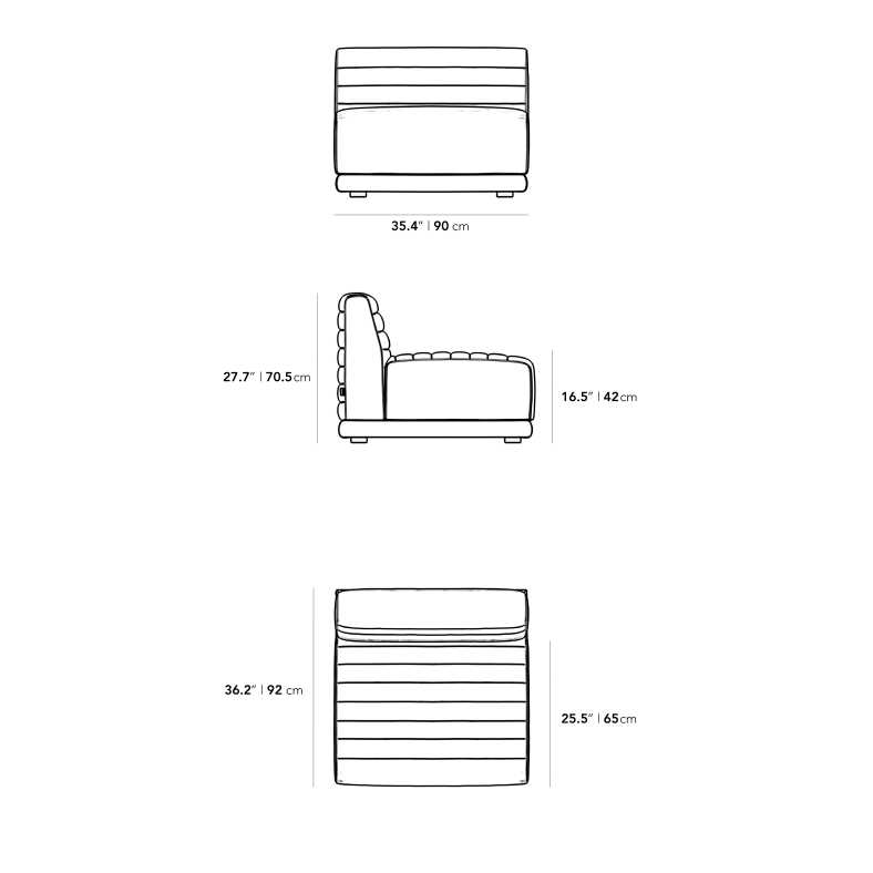 Immerse yourself in the opulent feel of the Ivano Armless. Artfully crafted, the horizontal tufting and grand silhouette create a luxurious, plush sink-in feel; making way for meaningful conversations and ultimate relaxation. Enjoy our preset configurations or customize your own design by purchasing pieces separately.