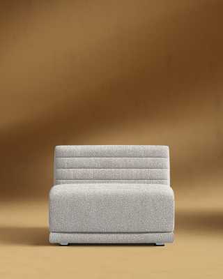 - Horizontal channel tufted detailing on the front, back, sides, and seat