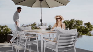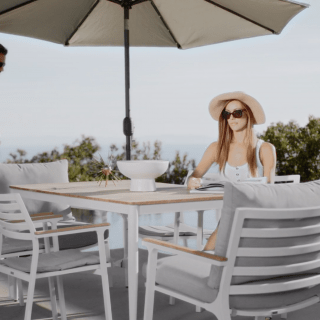 Teak wood is a perfect material for the outdoors. While it is highly durable and low-maintenance, teak wood will patina over time and will need to be maintained to preserve the golden tone. Visit our product care video for regular maintenance care.