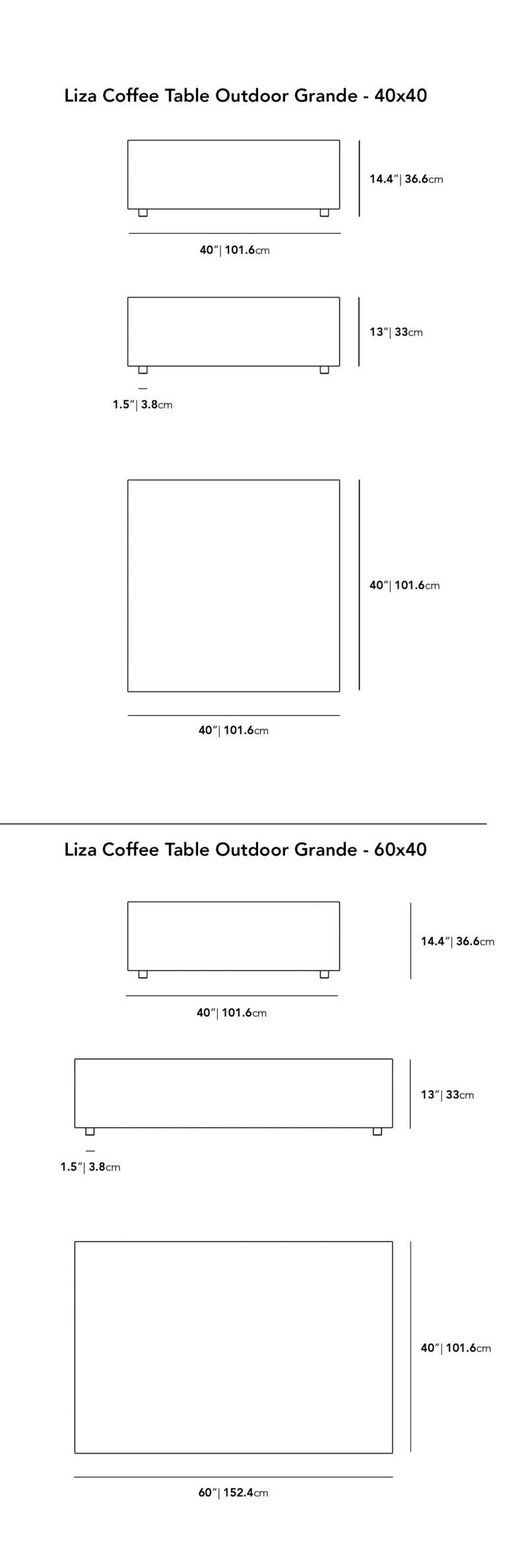 • 60 in x 40 in x 14.4 in - (40" x 60" | 102 x 152cm Size, Black Pietra Ceramic Surfaces, Black - Liza Outdoor Base Options)
