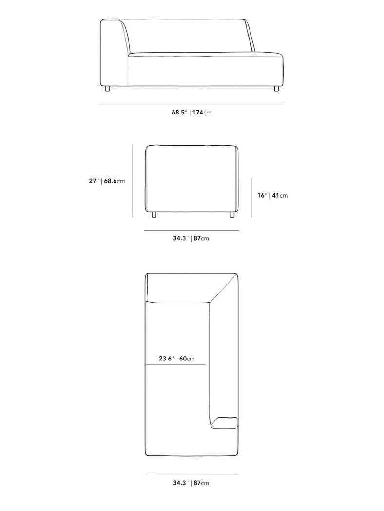Discover an atmosphere of relaxation and refinement with our Mika Outdoor Right Arm Chaise. Featuring distinctive plush angles and linger-worthy seats, wrapped in UV resistant fabric the Mika evokes a sense of grace and sophistication. Grounded by low profile legs, our Mika Modular Collection was made for laid-back, inviting entertaining.
