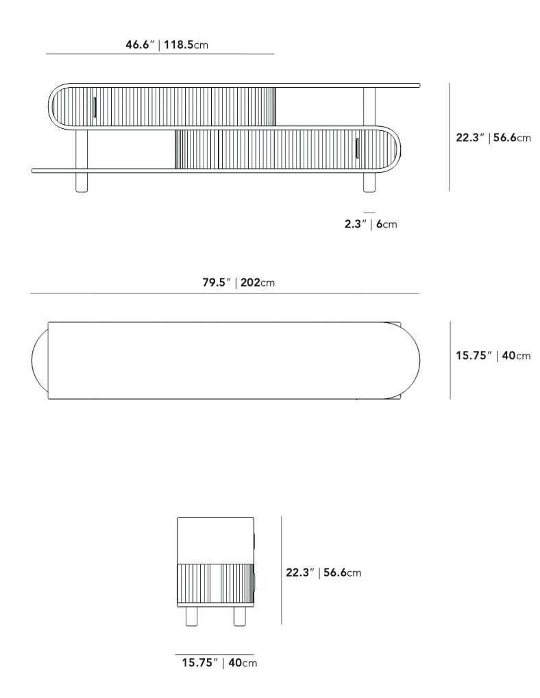 Transform your living space with the Noelle TV Stand, a harmonious fusion of contemporary style and enduring elegance. This uniquely crafted piece blends curved surfaces with clean, structured lines, creating a seamless flow. Sleek tambour detailing adds texture and sophistication, while smooth sliding doors provide stylish, concealed storage.