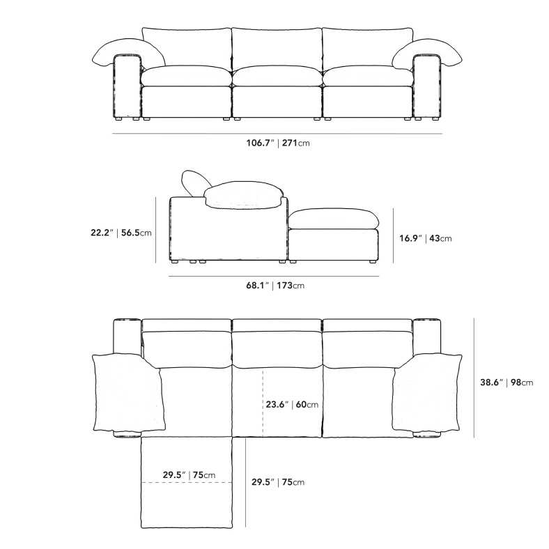 • Includes: 2 armrest pieces, 3 backrest pieces, and 4 ottomans