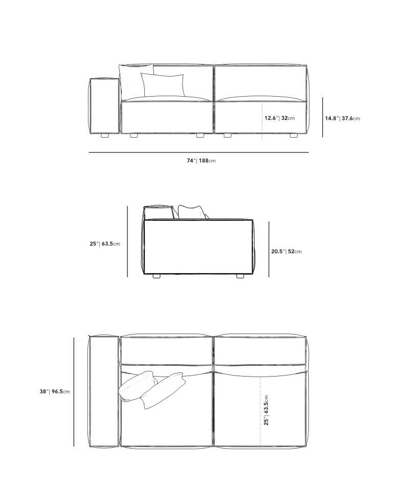The Porter Left Arm Two Seater is a simple structured seat with boxy flare and a low-set profile. Square armrests are made like a side table, while an elevated backrest provides ample lean-back support. High-density foam cushioning is nicely rounded and perfectly firm. Detailed pipe stitching around the edges finishes the modern design that can be combined with other Porter Modular pieces to create your perfect sectional.