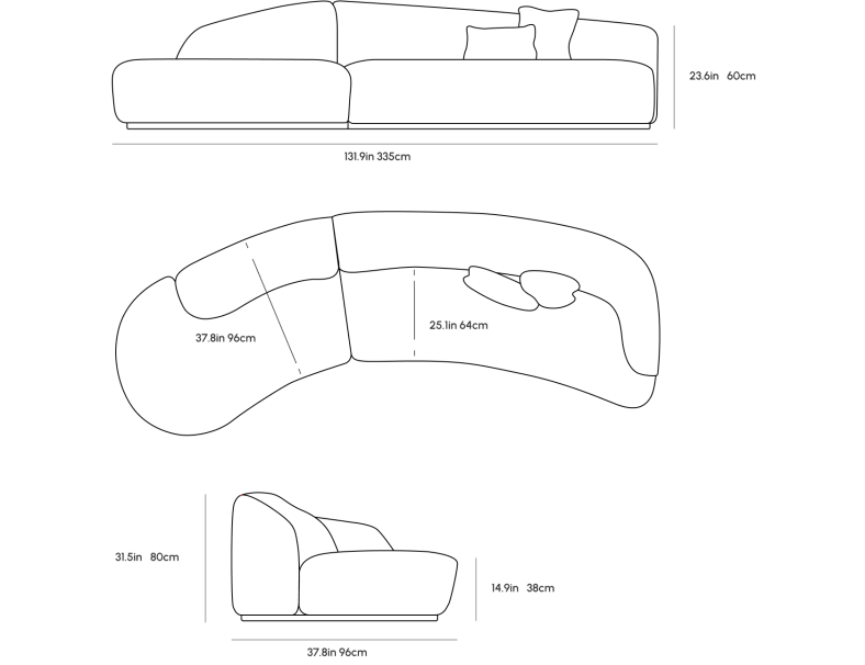Immerse yourself in the enveloping comfort of the Reya Curved Sectional. Articulated by monumental arches and a refined silhouette, the Reya Sectional creates a soothing ambiance; making way for relaxed entertainment and interaction.