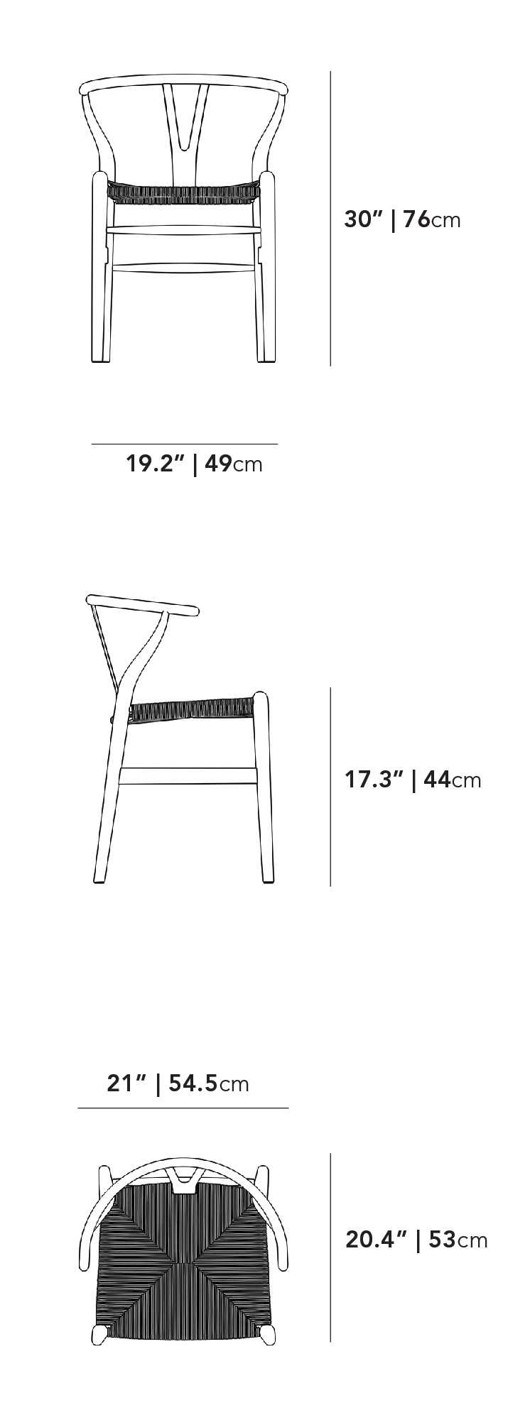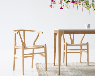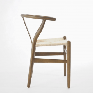 The Wishbone Chair is a premium reproduction of one of the most classic designs from the mid-century modern era. A rare combination of natural and practical, its misleadingly complex construction stems from the designer's extensive knowledge of wood. The fluid lines and minimalist style create an airy feel while the Y-back creates a truly organic impression. The curving top rail and tapered legs are stunning additions to the comfortably flexible yet sturdy woven seat.